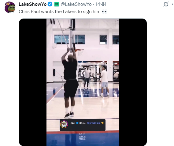 保罗训练动态引热议,湖人媒体表示,保罗想要湖人签下他;美媒Clutch Points则表示:保罗连续投进20个三分球,似乎是在向JJ-雷迪克和湖人队发出某种暗示。